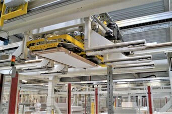 Das automatische Entladen der Buchwagen an den Reifenbaumaschinen erfolgt zumeist noch manuell durch Mitarbeiter. SYSTRAPLAN hat jetzt ein Portal zum automatischen Entnehmen der Laufstreifen vorgestellt.